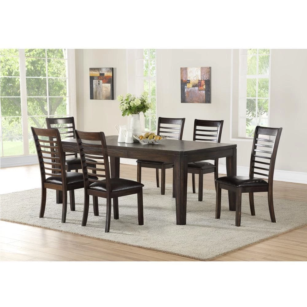 The comfortable, contemporary design of the Ally Dining Table welcomes everyone to your home. The table top features a beautiful fancy face veneer layup, a double-top design and an 18 in. locking leaf when extra guests are coming. The top is supported by sturdy, chamfered legs all in an espresso finish. Matching side chairs and a bench are available for purchase separately. Create your own set to complement todays interior decor’s.