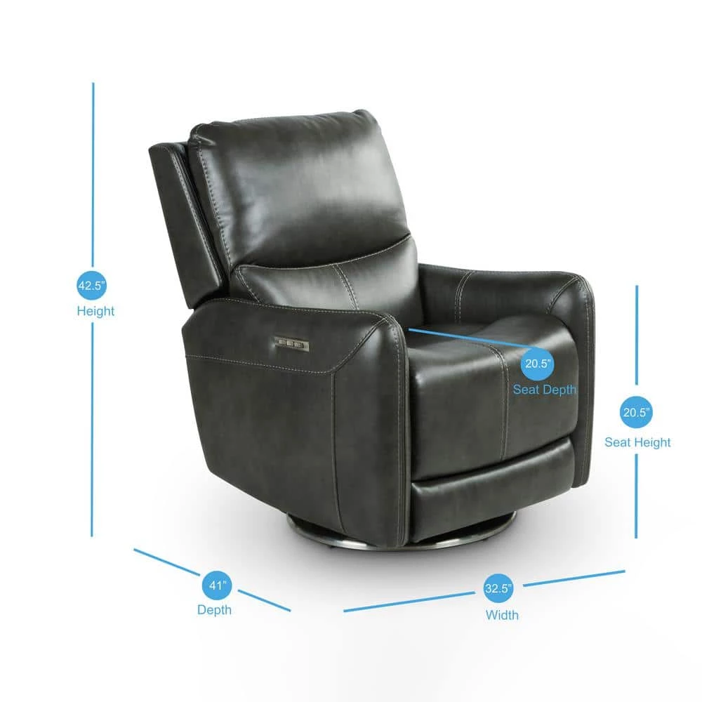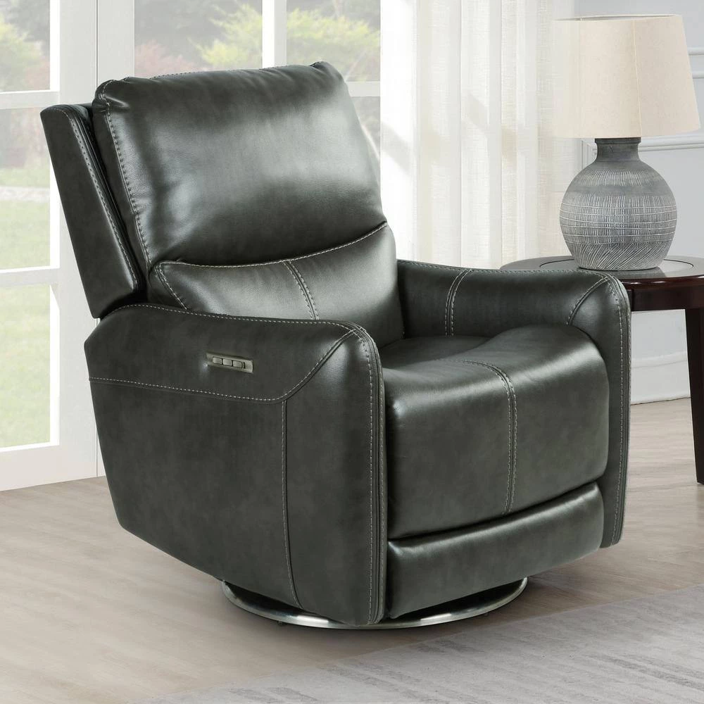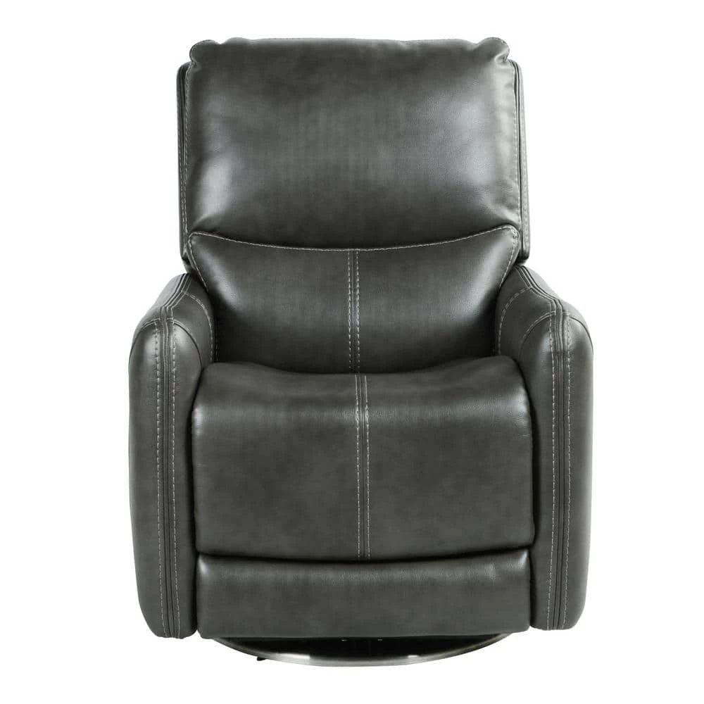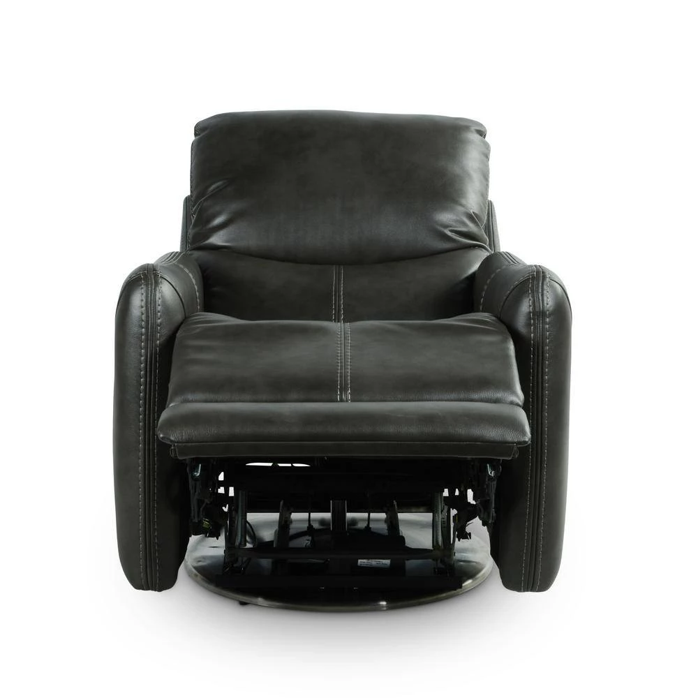 Modern elegance in a triple-power reclining package, Athens combines both style and function. This sleek recliner features pencil arms and power footrest, power headrest and power lumbar all in a chair that swivels 360 degrees. Covered in a durable charcoal faux-leather fabric with baseball stitching, Athens is sure to become your favorite chair. Your purchase includes one power recliner.