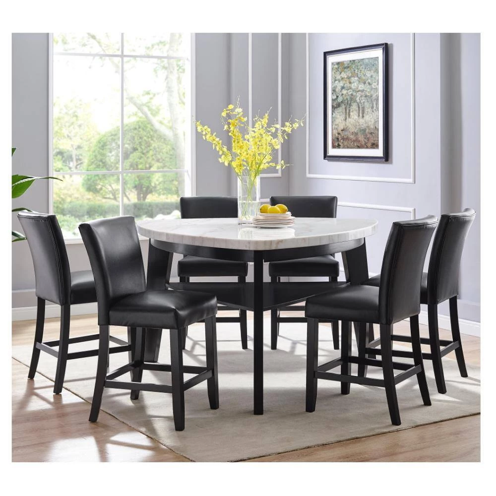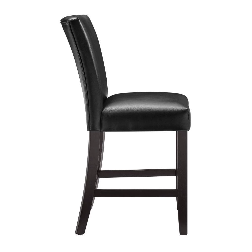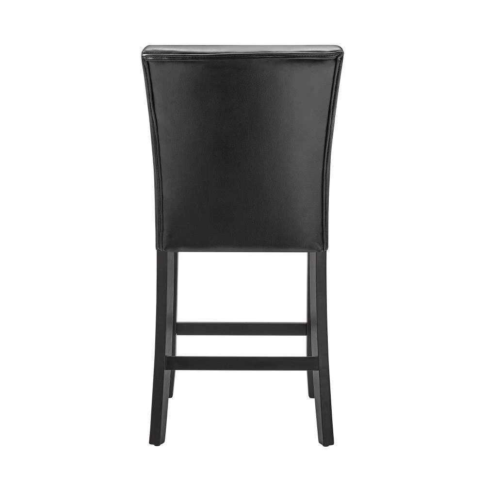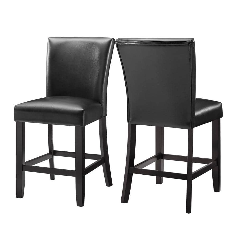 Welcome home elegant dining with the Carrara collection by Steve Silver. The Carrara Black Counter Height Chairs showcase stylish seating with a black polyurethane seat and back and ebony legs for a sleek look. Features include stretchers for stability and comfort with nail glides to protect your floors. Your purchase includes two counter height dining chairs.