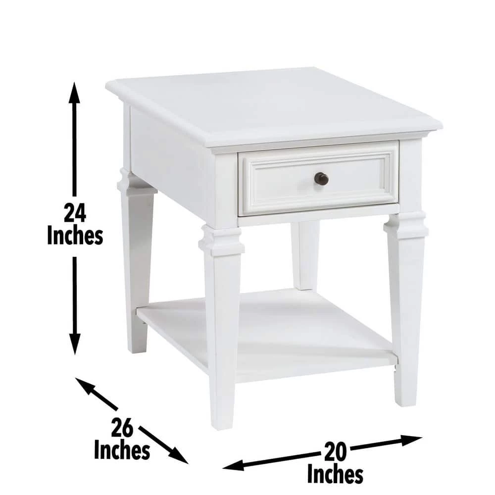 The modern farmhouse design of the Charlestown End Table, fits comfortably in casual or cottage decors. The crisp, soft white finish adds to the cottage feel with one drawer for storing remotes or other items and a bottom shelf for storage or display. Also available in this collection are the matching lift-top cocktail table and storage end table (sold separately). Your purchase includes one end table.