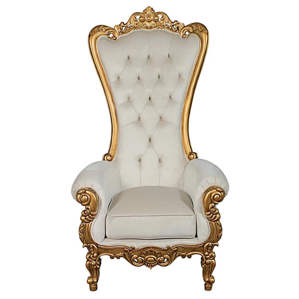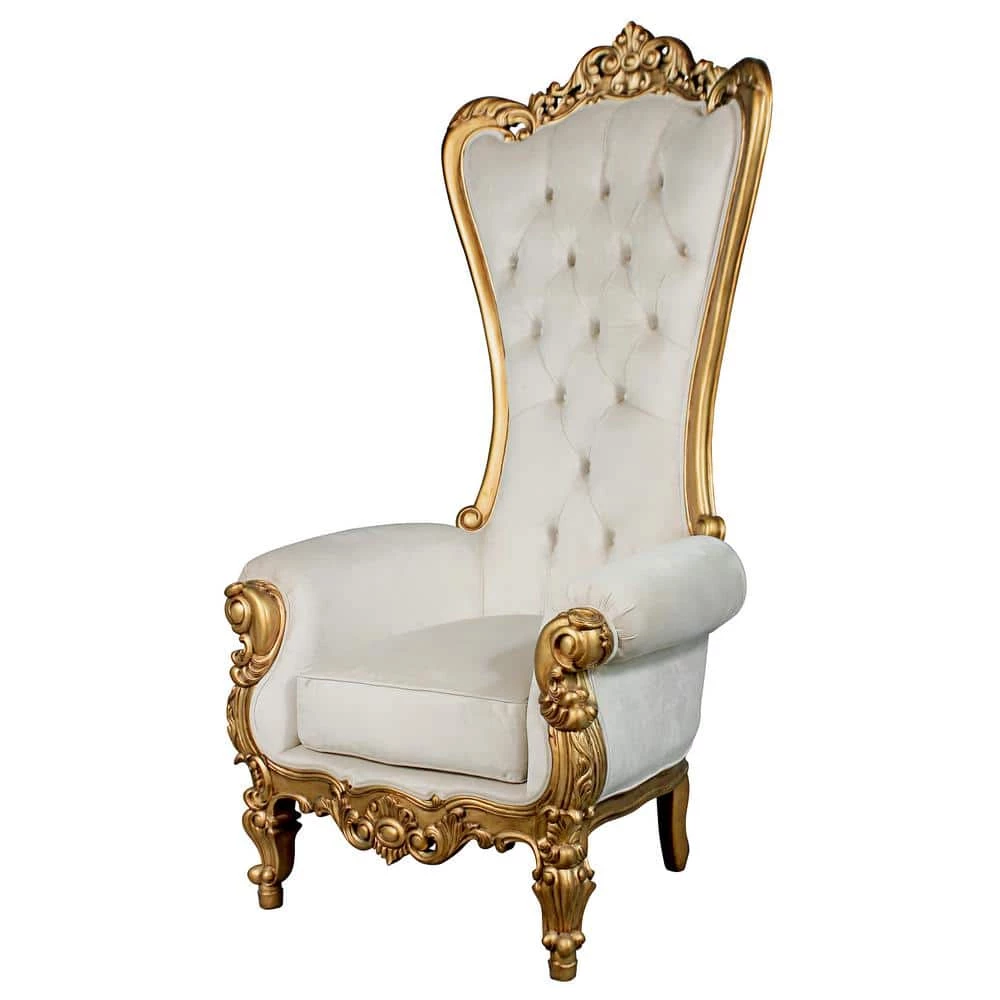 With its stunning curves and fine Italian Baroque design, this stylish throne chair has enough “wow factor” to affirm your status as royalty in your very own home. Created atop a sturdy mahogany frame, its seat, great scrolled arms and exaggeratedly high back are upholstered in velvet and hand tufted to be stylishly glamorous. Hand finished in a rich gold leaf sure to brighten your room. this modern, urban throne is available only from Design Toscano. 39.5 in. W x 39.5 in. D x 70.5 in. H. 68 lbs.