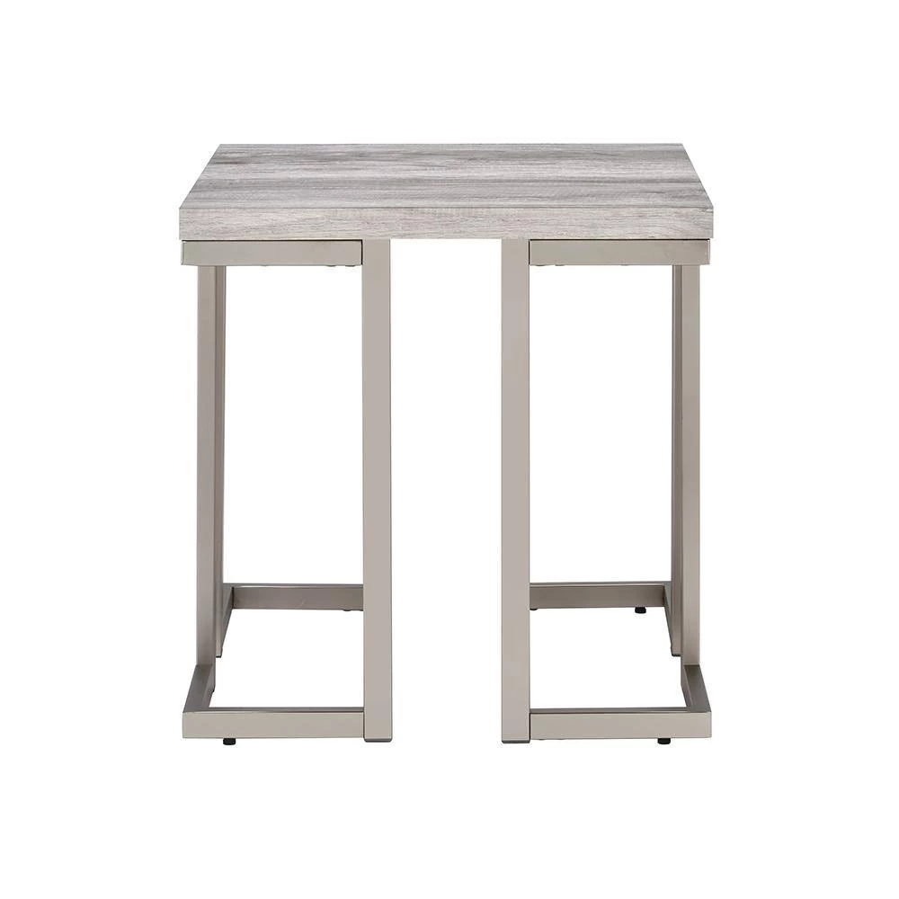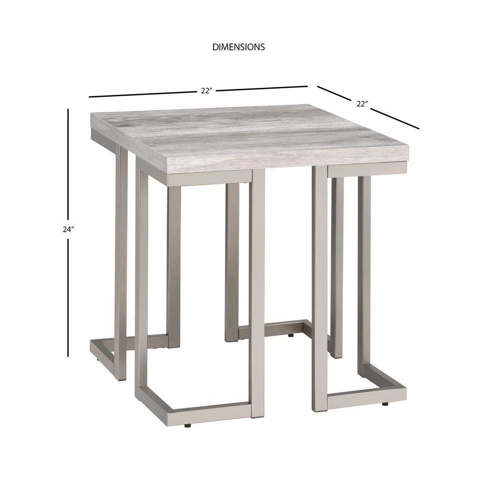 Refined rustic style comes to your living room with David occasional tables from Steve Silver Company. The David End Table features a matte pewter colored iron base in an architectural inspired design juxtaposed with the Silver shield driftwood top creating an end table that embodies the modern way to do rustic style. Your purchase includes one end table.