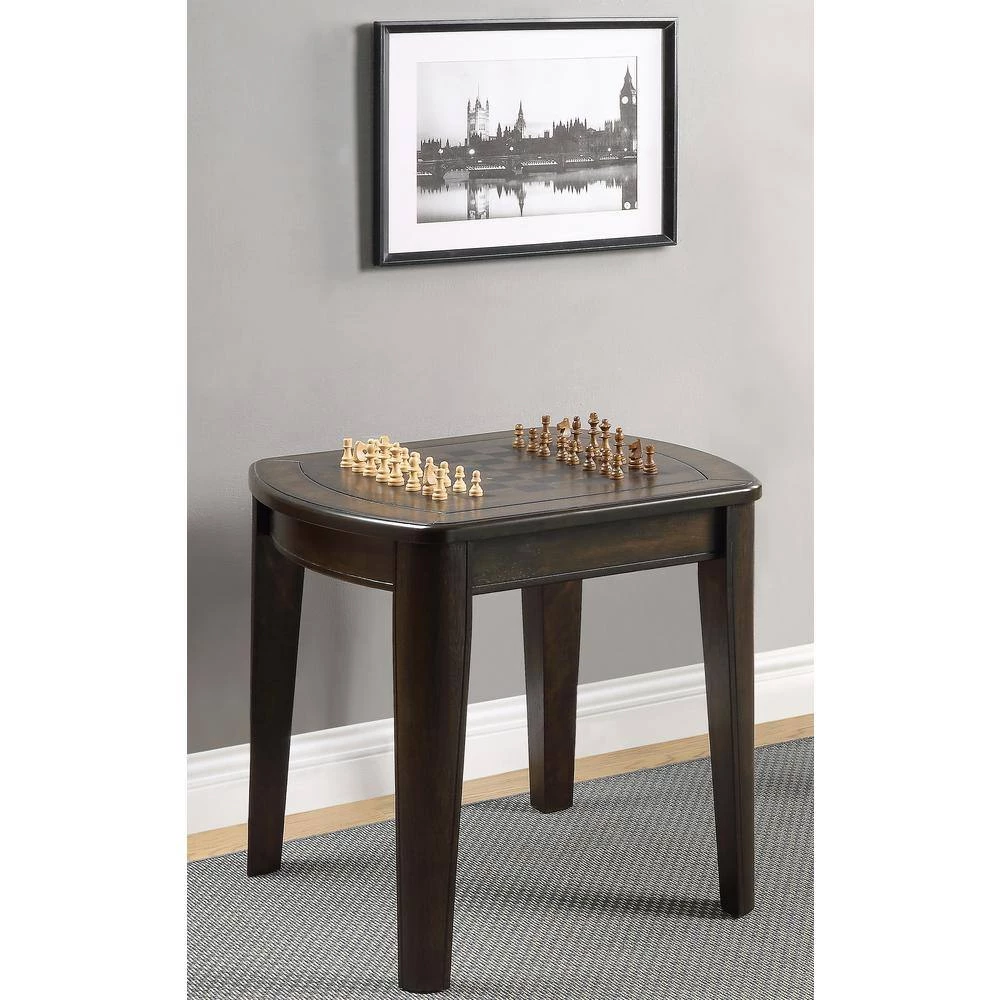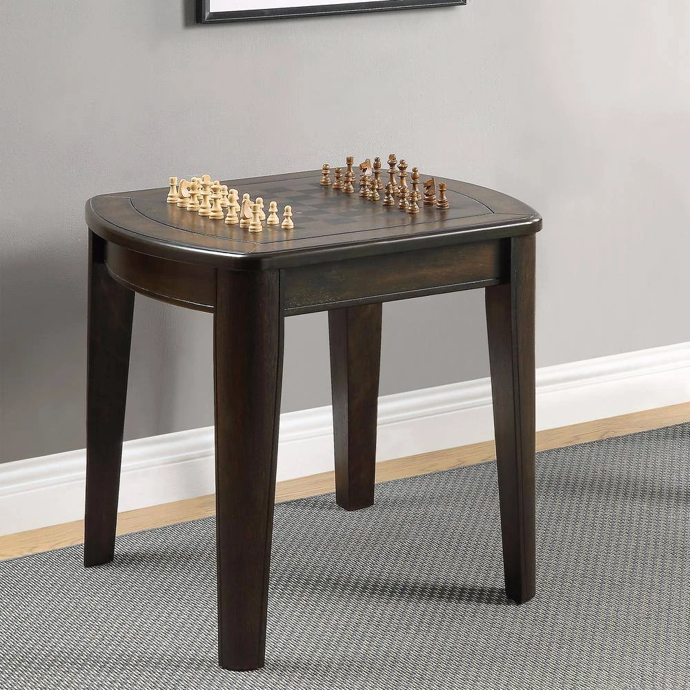 The multi-functional Diletta Game End Table features a reversible top that reveals a chessboard when it is time to get your game on. The dark walnut finish blends well with many decors and makes a great addition to your casual living space or entertainment area . Your purchase includes one end table.