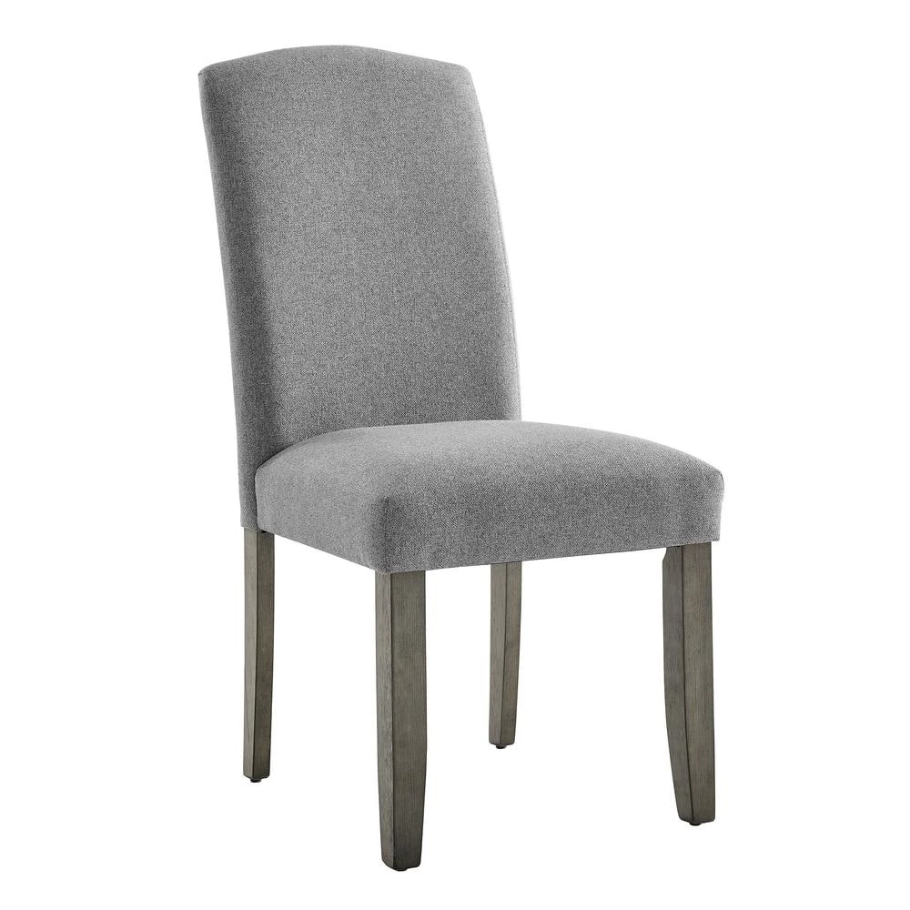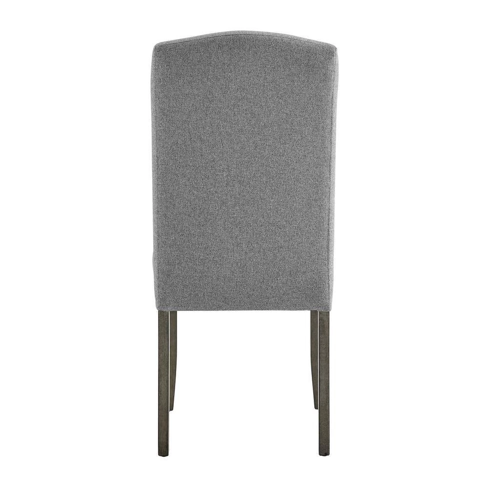 Transitionally styled and upholstered for comfort, the Emily Side Chair offers fashion-neutral styling. The tapered, solid wood legs feature a mossy grey finish offering a gentle contrast to the grey polyester fabric that is both durable and easy to clean. The arched crown back offers an elegant touch that works well in casual or more sophisticated settings. Your purchase includes two dining side chairs.