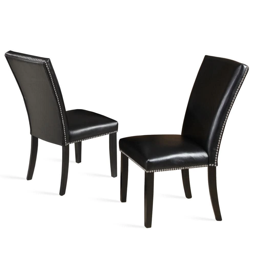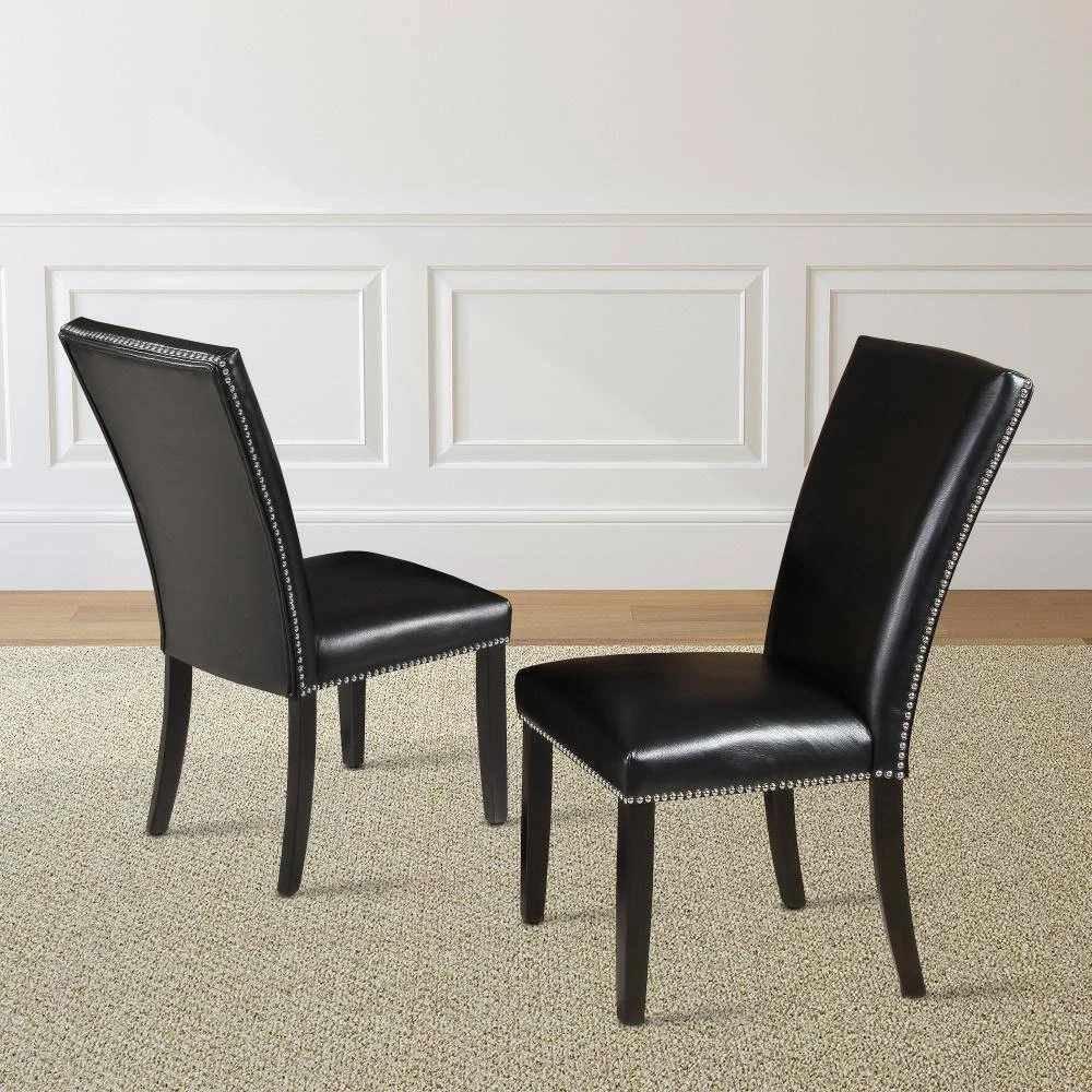Put on the ritz with Finley dining by Steve Silver Company. The Finley dining chairs add a touch of glamour to your dining room with easy to clean polyurethane upholstery on the seat and chair backs that is accented by a pewter nail head trim. Your purchase includes 2 dining chairs.