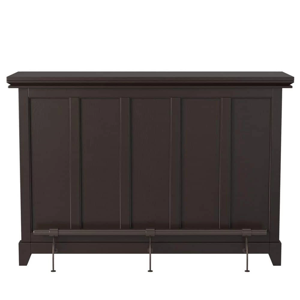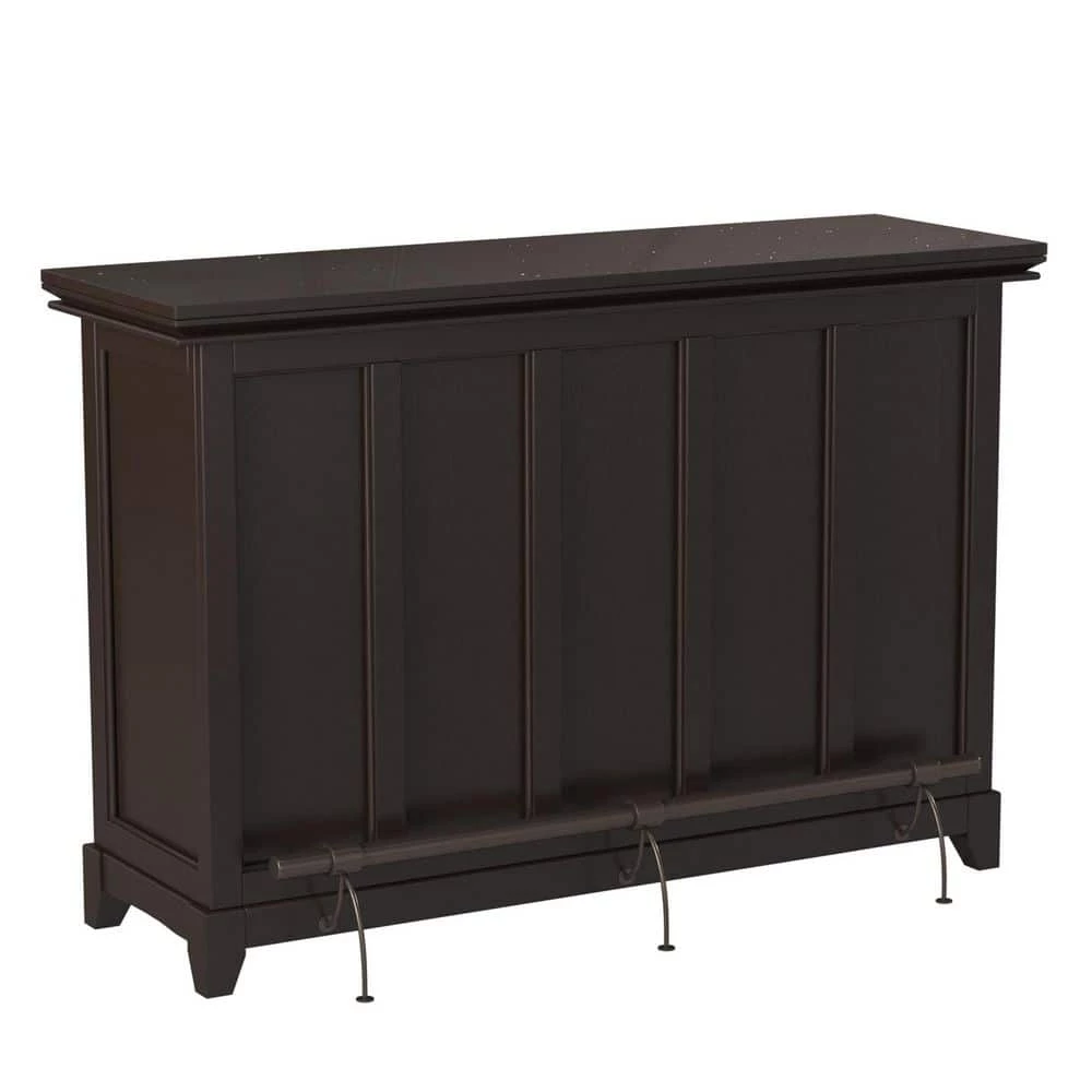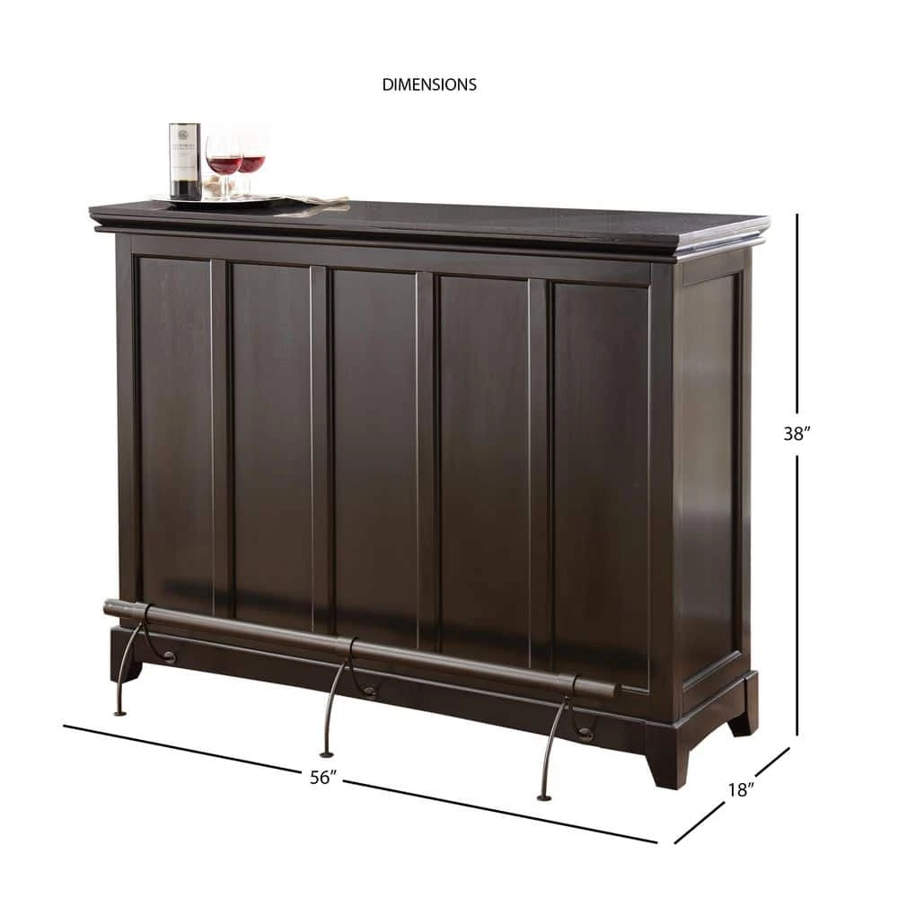 The Garcia counter height bar will be the focal point of your entertaining space. Constructed of hardwood solids and veneers in a ebony painted finish with a Silverstone composite top that resists scratches, moisture and heat. Storage is plentiful with space for both stemware and bottles. A front footrest is included and makes this a comfortable spot for friends to gather.