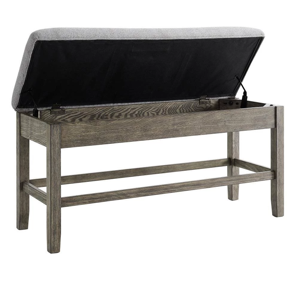 Refined rustic styling brings an elegant casual feel to dining in the Grayson Counter Bench. The bench offers valuable storage for placemats, silverware or other items. Your purchase includes one counter height bench.