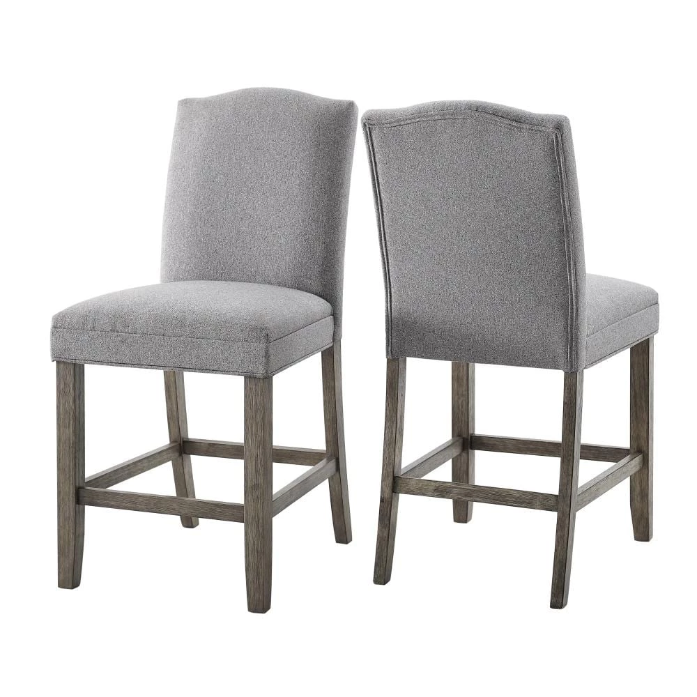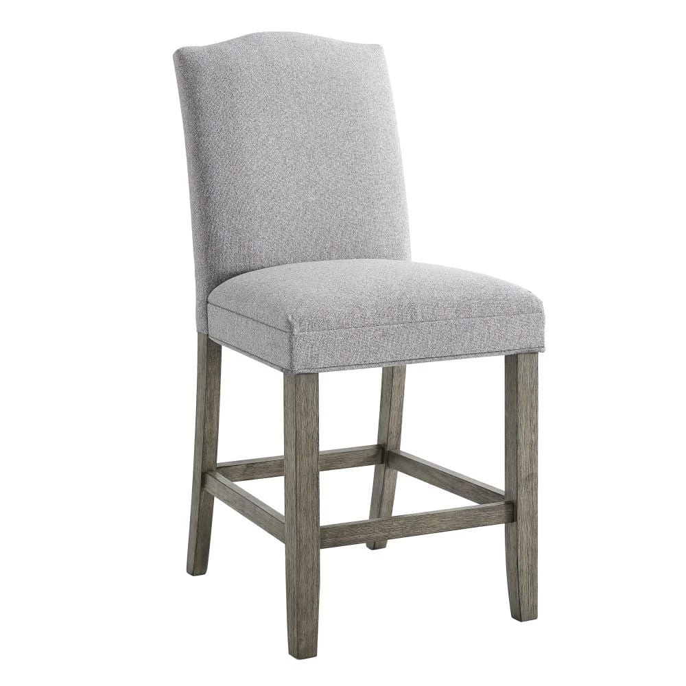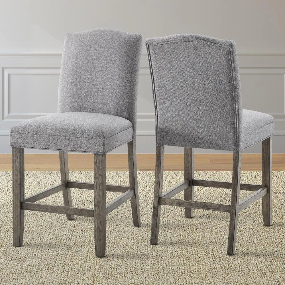 Refined rustic styling brings an elegant casual feel to dining in the Grayson Counter Chair. This very comfortable chair offers an ash grey fabric to compliment the driftwood finish. Your purchase includes two counter height chairs.