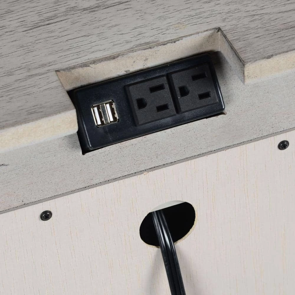- Nightstand features two USB connections for easy recharging and two electrical outlets for easy access