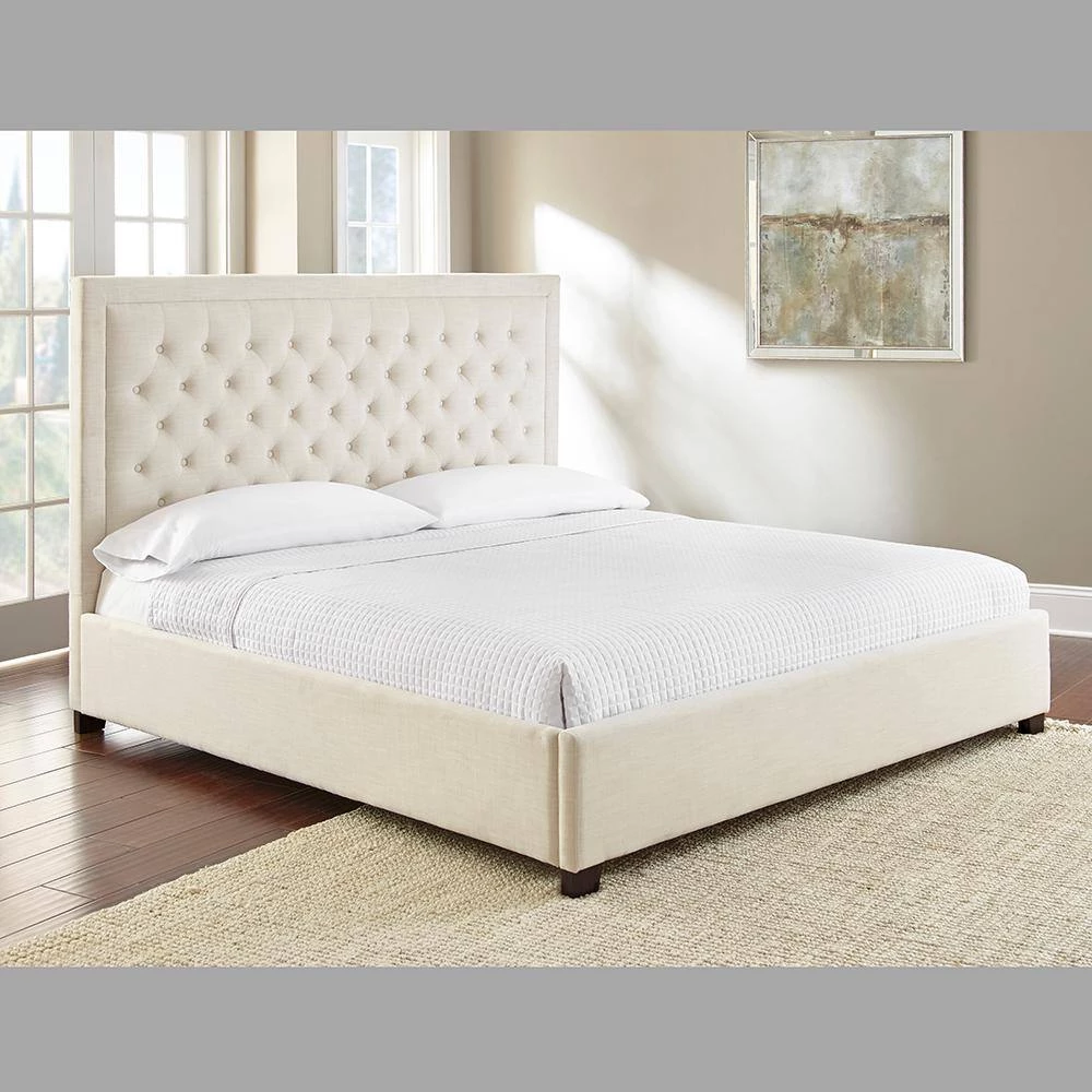 Clean lines mark the transitional style of the Isadora Upholstered Panel Bed. Styling details that include a button tufted headboard and well-tailored rails and low footboard. The comprehensive foundation features a 39 piece slat system with center supports to accommodate a box spring and mattress or for the lower profile of a platform bed, can use a mattress only.