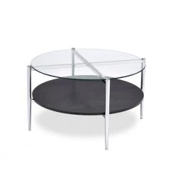 Bayliss 32 in. Glass/Chrome/Merlot Medium Round Glass Coffee Table with Shelf by Steve Silver