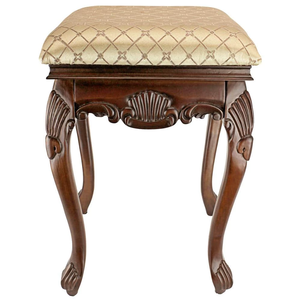 Rising from hand-carved Queen Anne legs to a cushioned seat, this sturdy, solid hardwood stool is perfect bedside, in a luxury bath or at a lady’s vanity. Crowned with a generous expanse of quality, tone-on-tone jacquard upholstery. Simple assembly required. 15″Wx15″Dx21.5″H. 10 lbs.