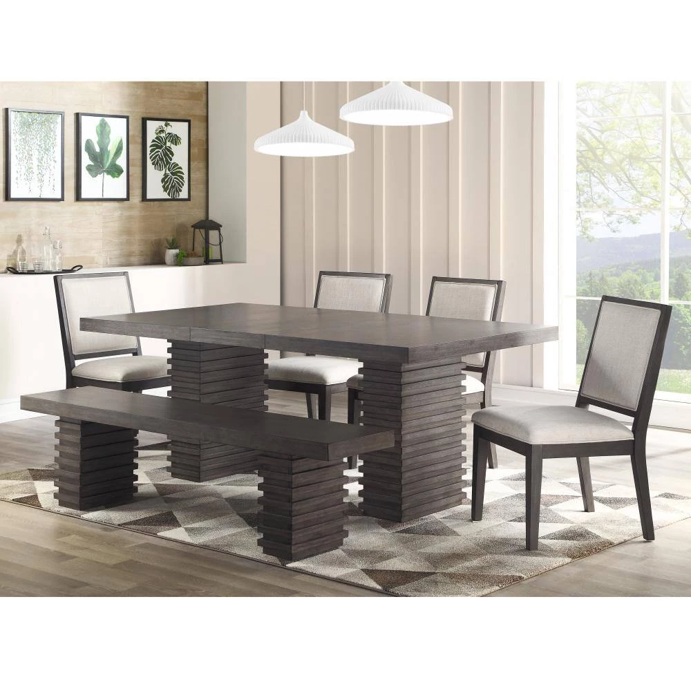 Entertain your family and friends with the bold contemporary styling of Mila. The Mila Dining Side Chair features a fashion-forward washed grey finish over hardwood solids and ash veneers, pairing beautifully with the beige polyester back and seat. The chair features a stylish framed wood back that looks as good from the back as from the front and complements the geometric design in the table’s trestle base. Your purchase includes two dining side chairs.