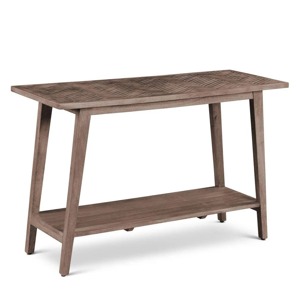 The Milani occasional collection brings the natural beauty and character of wood right into your living room. Crafted of mango solids, the Milani Chairside End Table features a natural finish over mid-century modern styling for a style that combines rustic charm with an elegant silhouette. The solid wood inlaid herringbone top adds interest and the bottom shelf provides space for storage or display. Also available in this collection are the cocktail table, end table and sofa table (purchase separately). Your purchase includes one chairside end table.