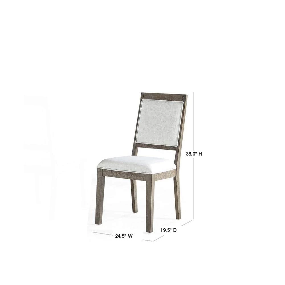 Contemporary lodge styling creates a grand statement with the cozy Molly Dining Side Chairs. Comfortable upholstered seats and backs in a linen look, 100% polyester fabric that is easy to clean. The frame features sturdy, solid wood construction in a washed grey finish. Your purchase includes two dining side chairs.