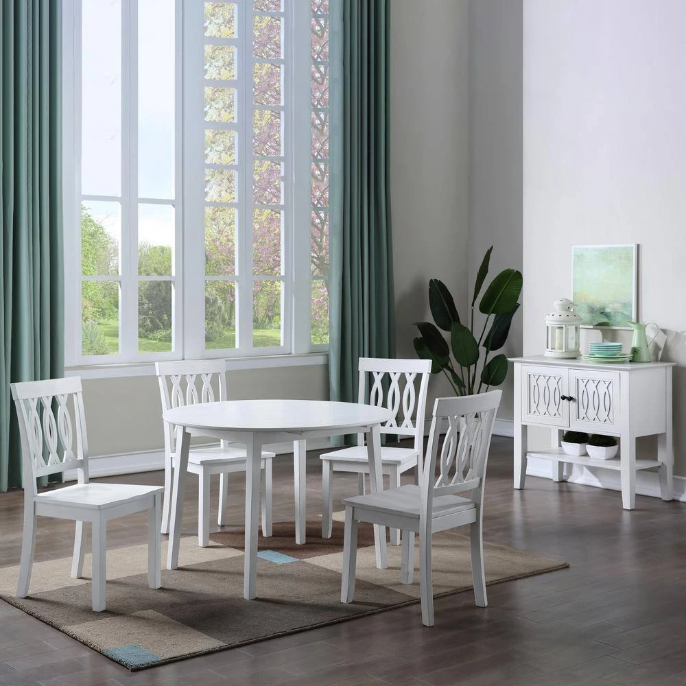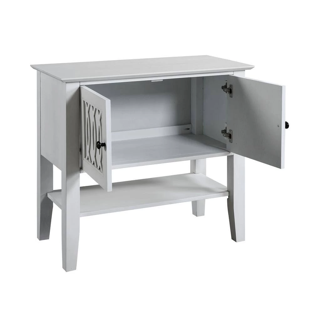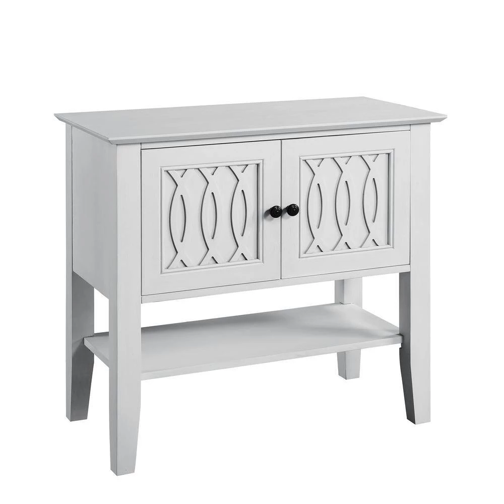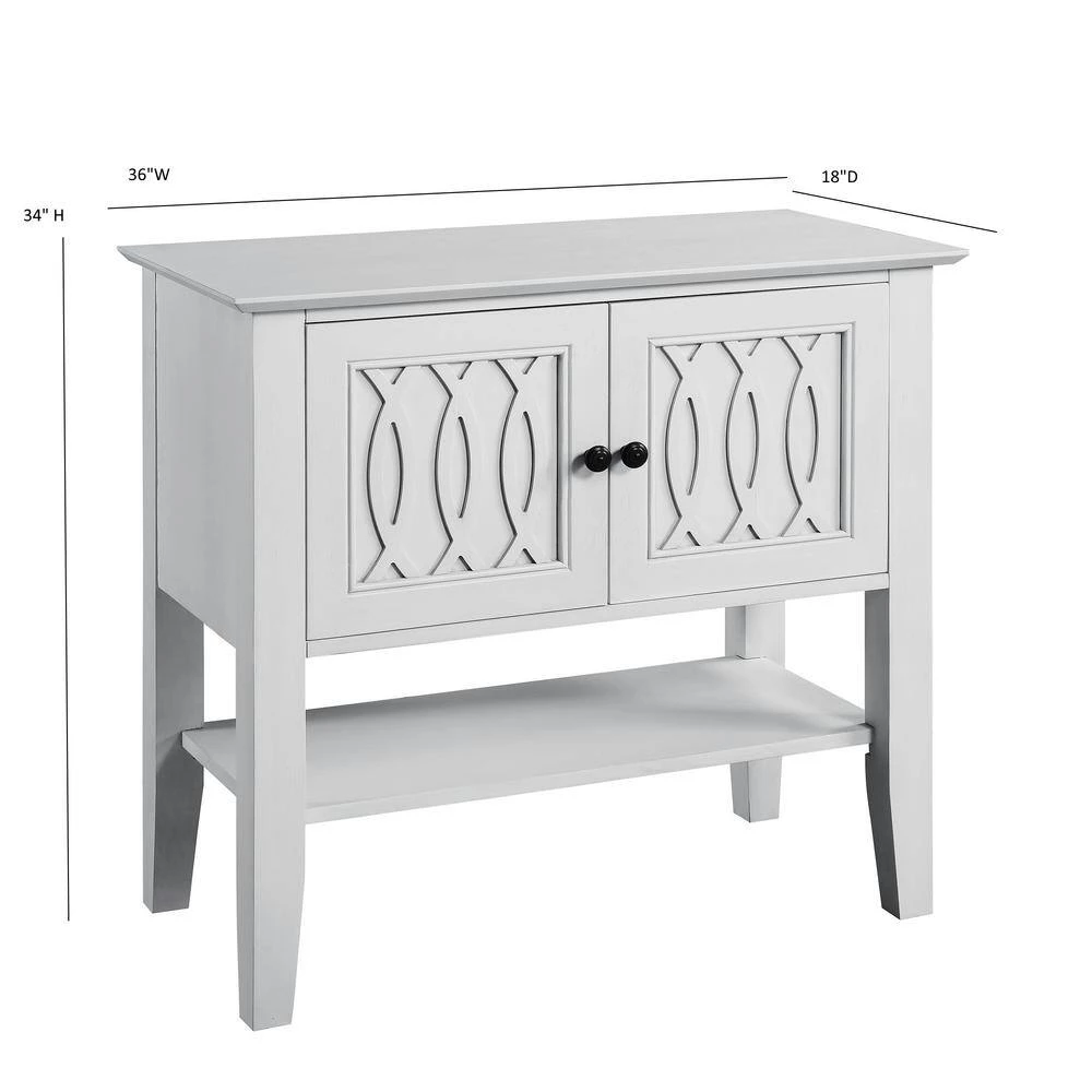 The compact yet very functional Naples Server offers much needed space for serving and storage to any dining area. The white finished piece features the overlapping ring design that echoes throughout the Naples collection. Twin doors offer hidden storage for any items while the bottom shelf offers additional storage or display space. Your purchase includes one server.