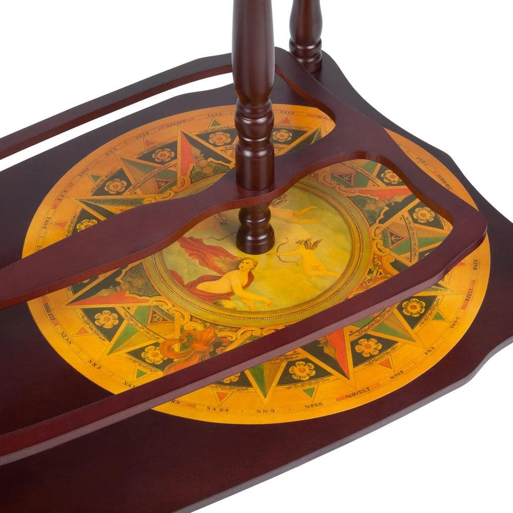 Serve guests with Old World style from your own globe bar cabinet that opens to keep favorite beverages and stemware at your fingertips! Embellished inside and out with replica vintage maps of the earth and skies, this 13″diameter bar set has ample room for your treasured bottles and glasses in its double level bar globe storage area. You’ll be able to offer cocktails anywhere by easily relocating this sturdy hardwood portable caddy using its rolling metal casters and to smartly serve canapes from the adjacent globe bar table. This liquor cabinet is the perfect gift for any new home bar! Simple assembly required. 27″Wx18″Dx34″ H. 17 lbs.