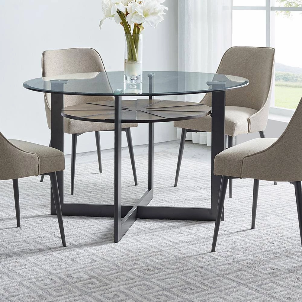 Step up to the latest in mid-century design with Olson dining from Steve Silver Company. The sleek Olson Side Chairs provide comfortable seating wrapped in an easy to clean khaki polyester fabric. The modern design is enhanced by the tapered iron legs with floor glides to protect your floors. Your purchase includes two dining side chairs.