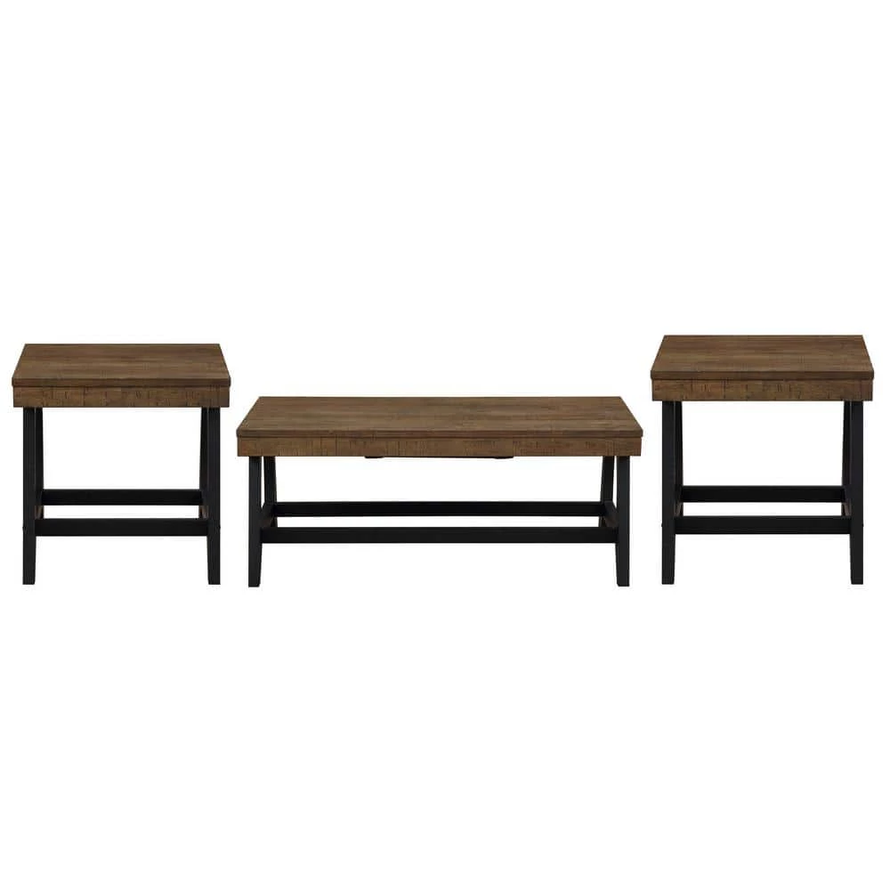 Introducing the Ralston 3 Piece Occasional Set with a rustic feel that works great in today’s casual interiors. The top of the lift-top cocktail table features a warm, caramel finish with saw rasping with a contrasting ebony base. The lift-top pulls up for convenient work or dining right from the comfort of your sofa and reveals hidden storage to keep your space uncluttered. The matching end table features stretchers for strength and stability. Your purchase includes one lift top cocktail table and 2-end tables.