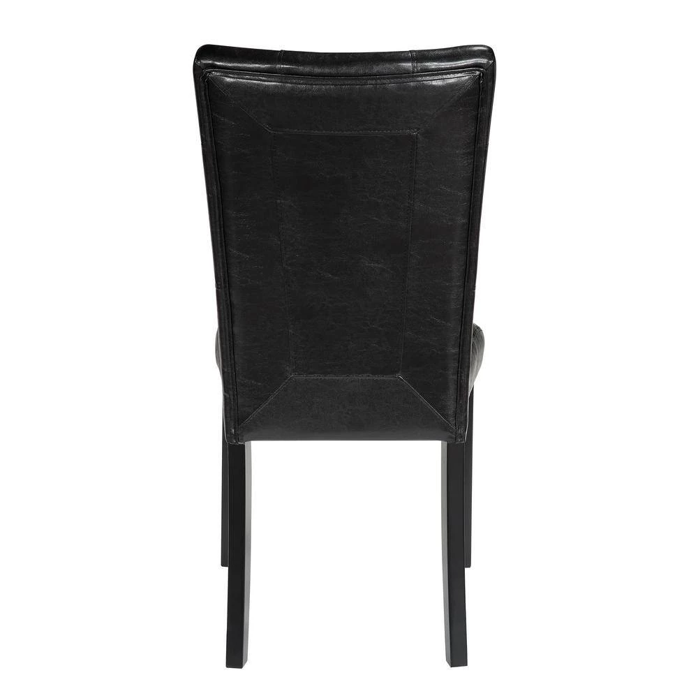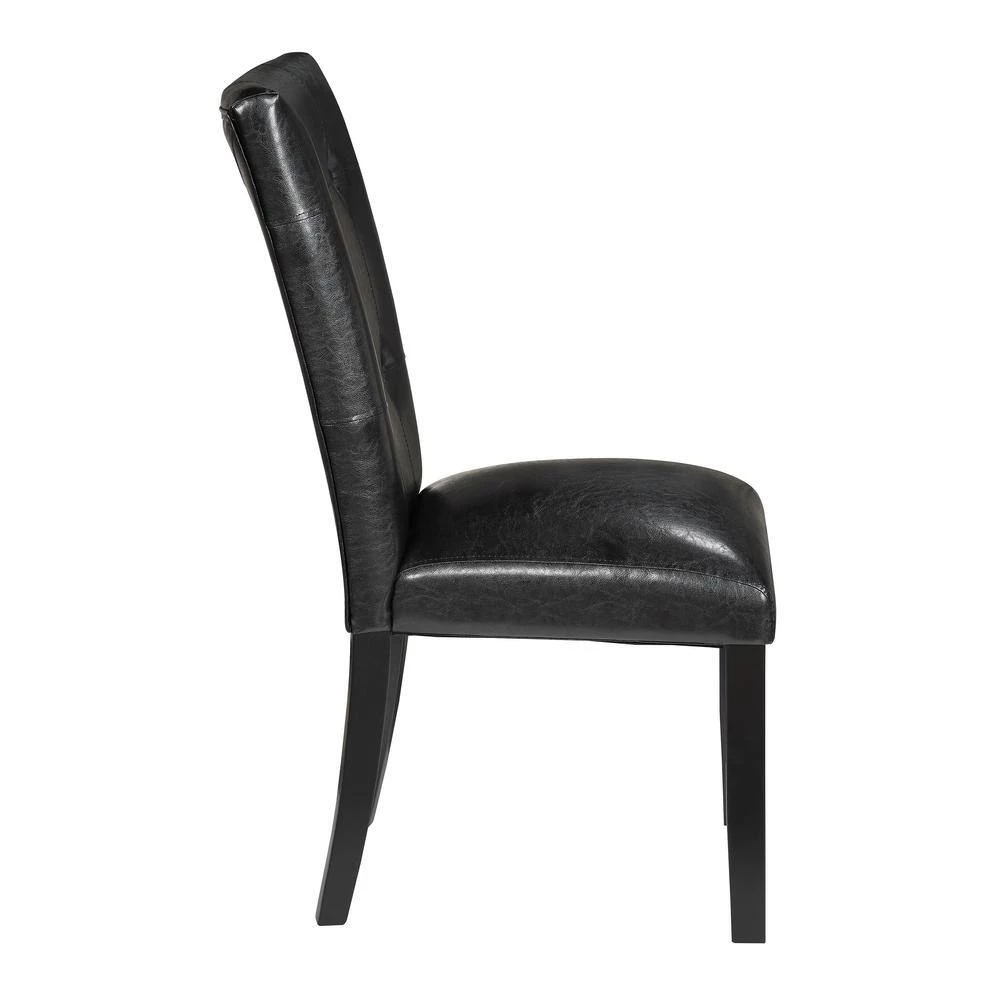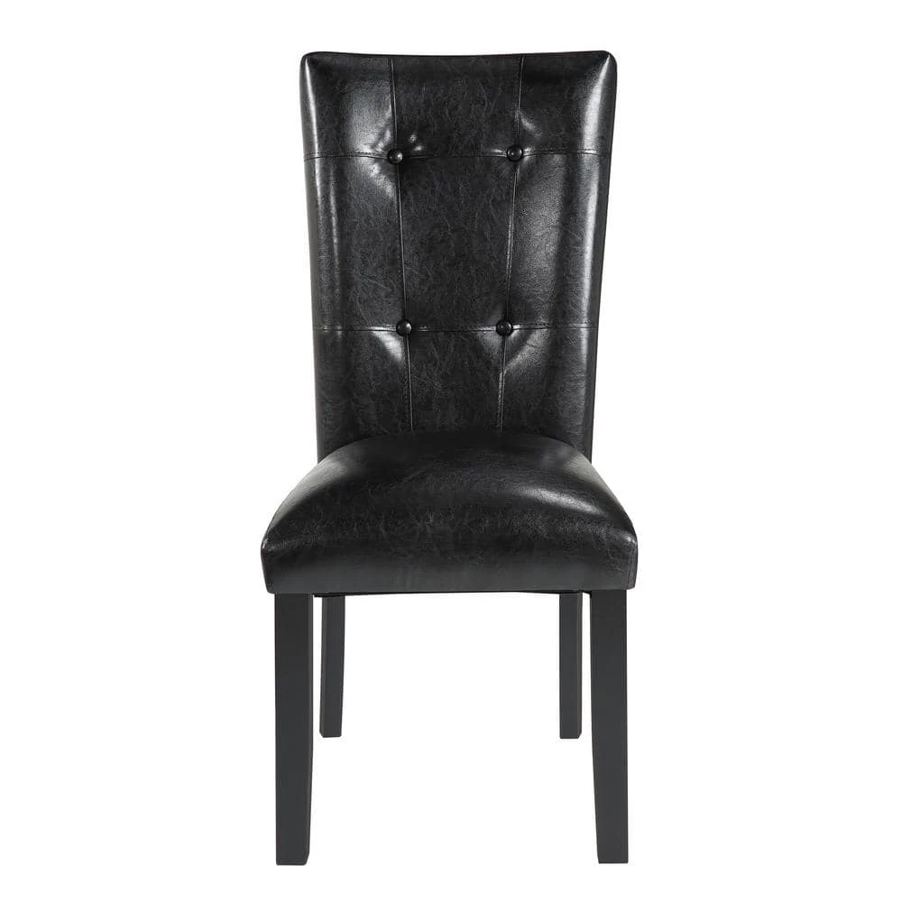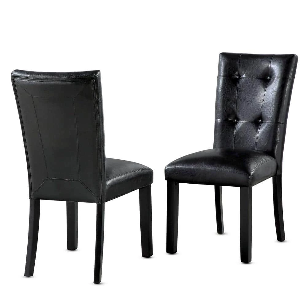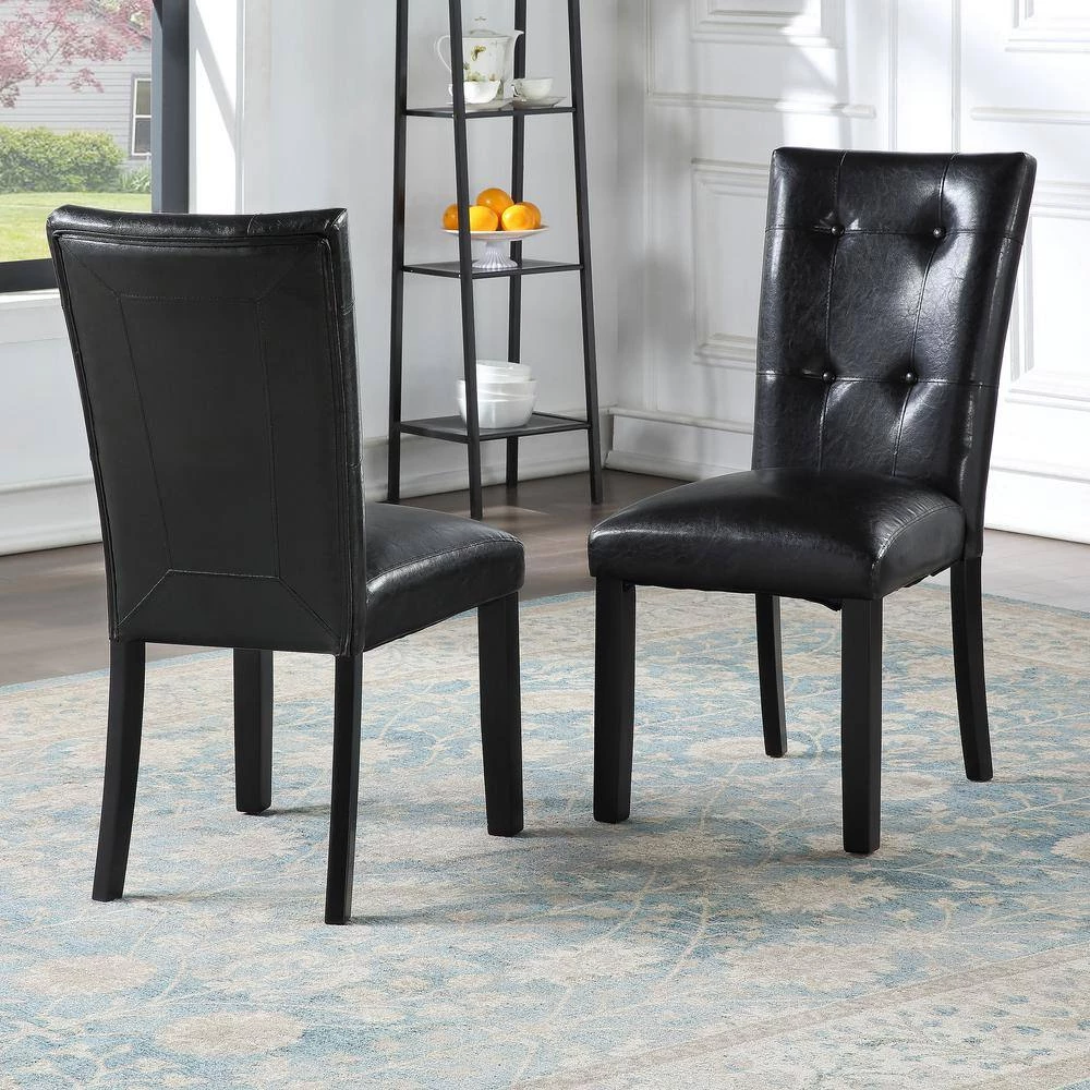 Comfortable and elegant, the Sterling Side Chair will dress up any room while welcoming guests at the same time. The ebony faux-leather cover features a button-tufted back and solid wood legs finished in a deep, cordovan cherry that adds depth and warmth to your space. Your purchase includes two dining side chairs.
