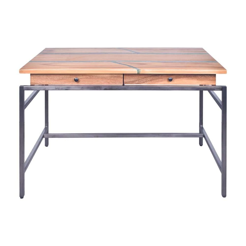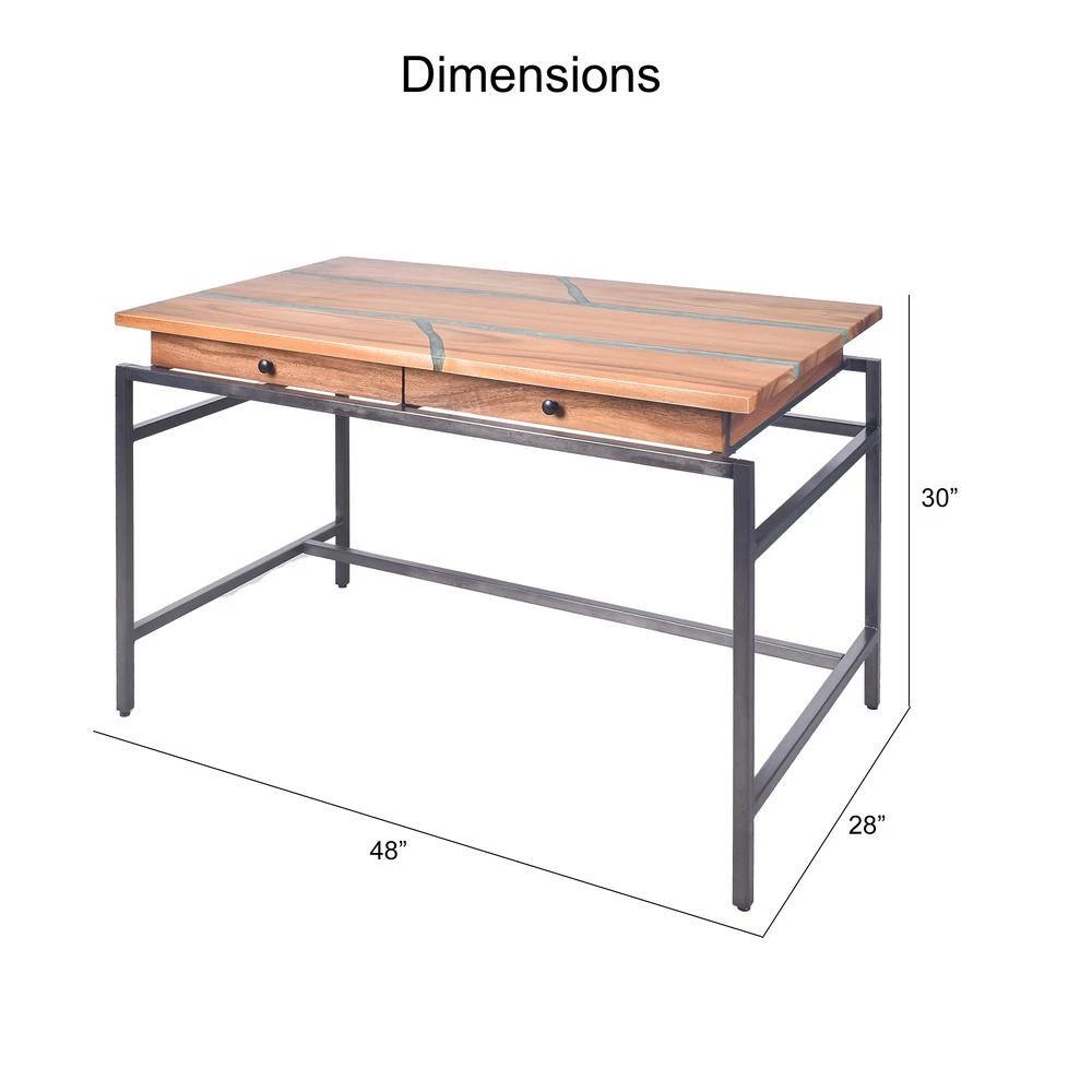 Refresh your room with the Tamra Desk featuring nature’s landscape supported by a stylish tubular metal base. The solid wood top is inlaid with beautifully contrasting emerald resin to smooth the desk surface and create a visual masterpiece crafted by nature. The beauty and character of the table shine as the natural contrasts and grain of the wood add to the elegance of the table. Smooth operating drawers offer plenty of storage for a desk that will fit beautifully in a home office or open den setting.
