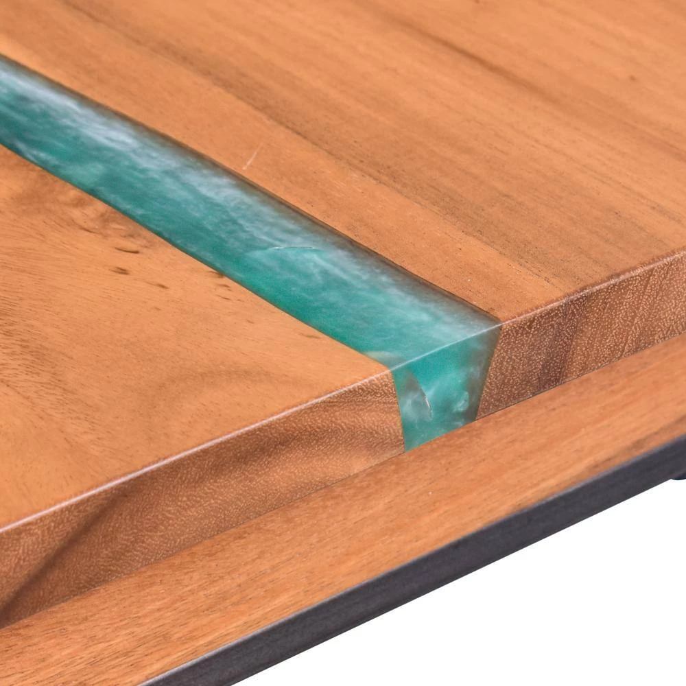 - Solid acacia wood top with contrasting resin fill and clear finish