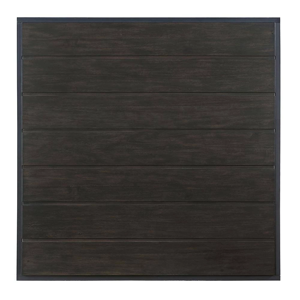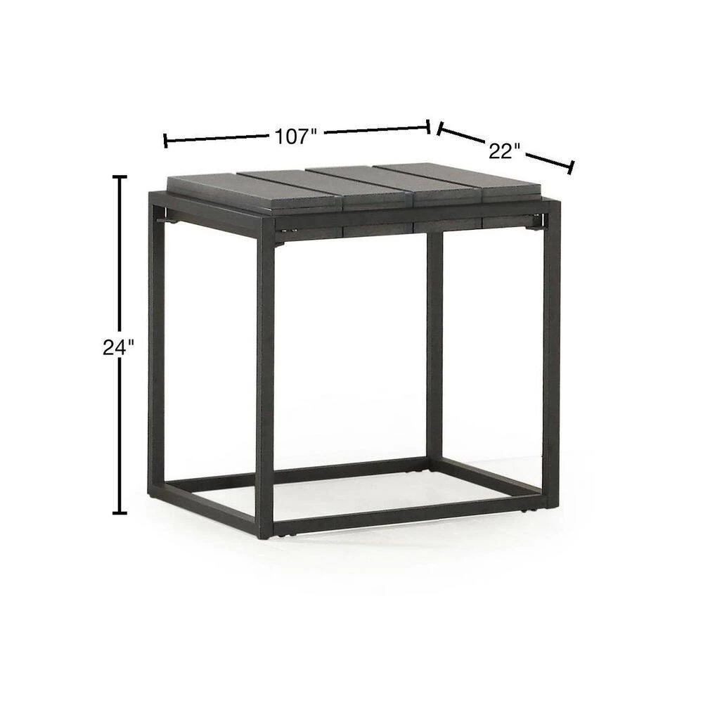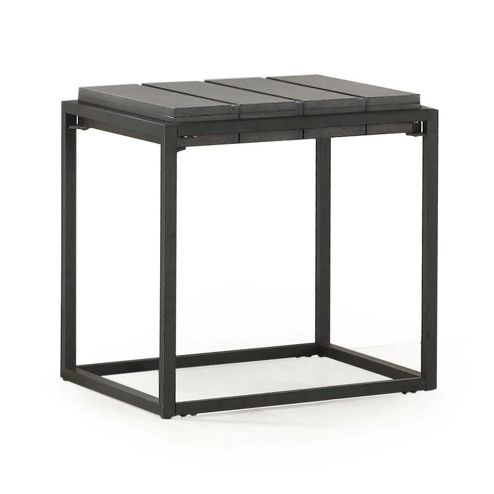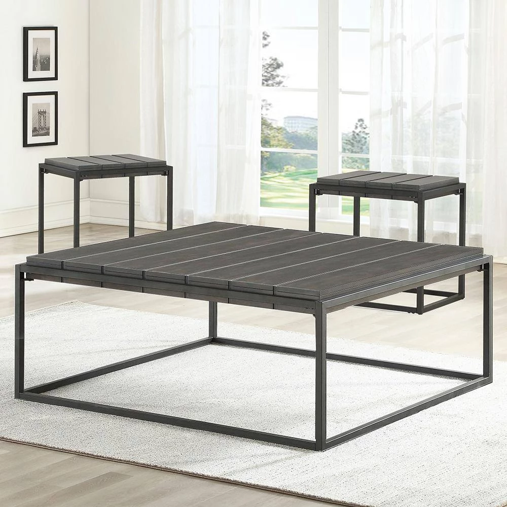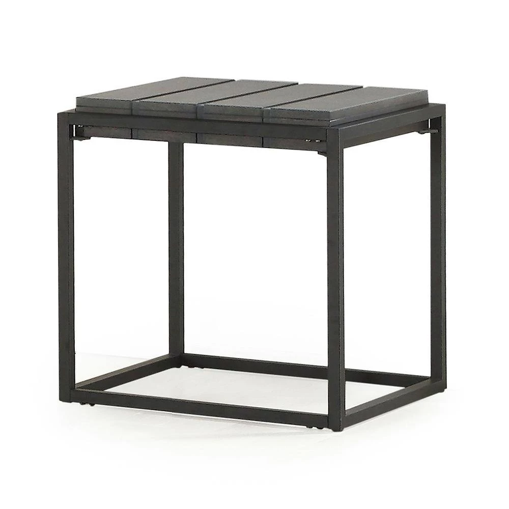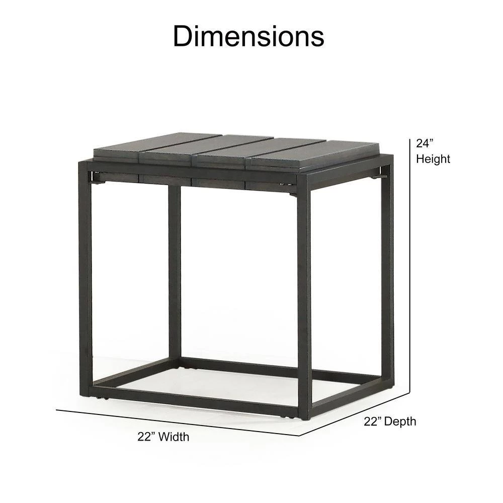 The Tekoa square end table is highlighted by its Acacia veneered plank-effect top. Finished in a lustrous walnut to complement many styles and decors. The mixed-media iron base is finished in dark grey. Your purchase includes one end table.
