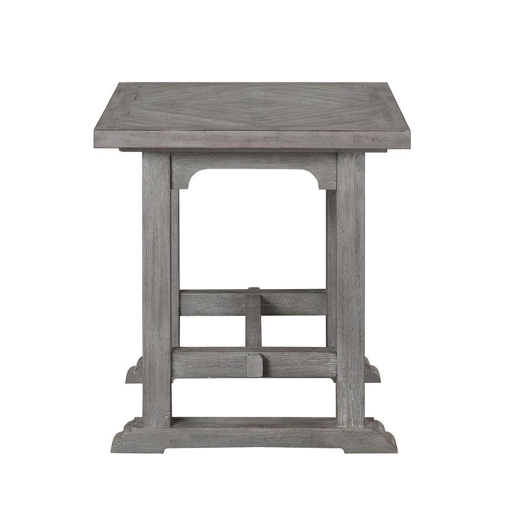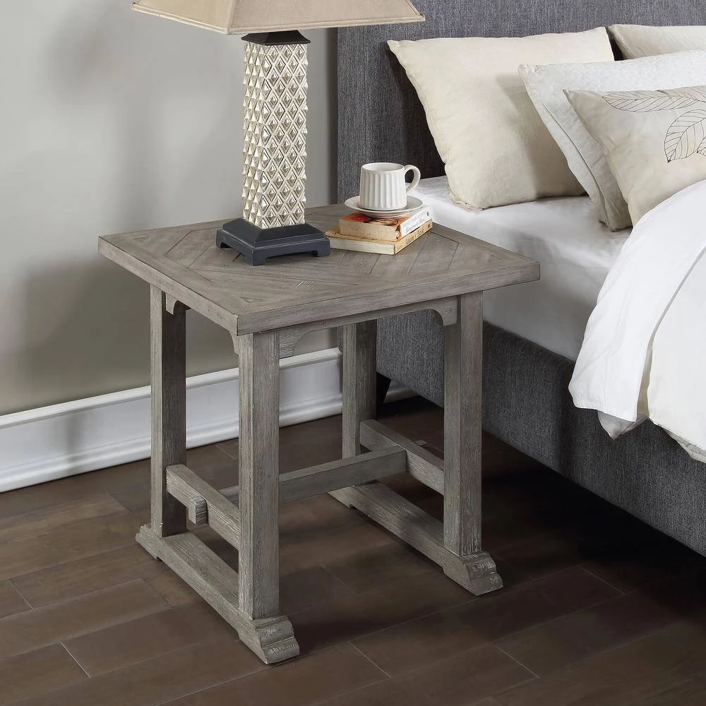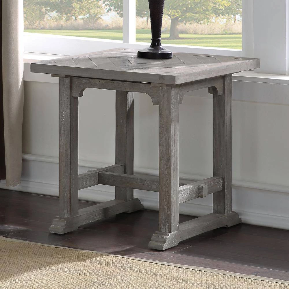 Rustic yet refined, casual but elegant, Whitford represents a duality of styles that come together in a wonderful combination of design. The Whitford End Table features signature raised double diamond inlay on the tabletops and saw rasping and other distressing to enhance the casual feel of the collection. The End Table works great as part of a set of Whitford Occasional Tables or by itself beside a favorite chair. Your purchase includes one end table.